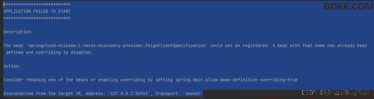 The bean 'springcloud-alibaba-1-nacos-discovery-provider.FeignClientSpecification' could not be registered. A bean with that name has already been defined and overriding is disabled.