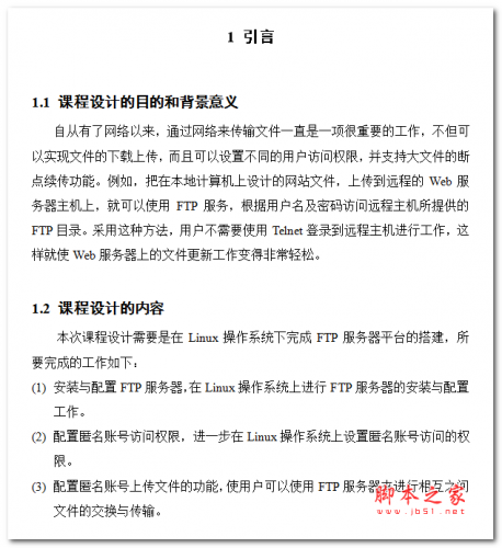 Linux 本页总览 基于Linux的FTP服务器的安装与配置 中文WORD版 大小:1.12MB 时间:2024-12-07 本次课程设计需要是在Linux操作系统下完成FTP服务器平台的搭建。 Linux[1]是一套免费使用和自由传播的类UNIX操作系统,它主要用于基于Intel x86系列CPU的计算机上。这个系统是由世界各地的成千上万的程序员设计和实现的。其目的是建立不受任何商品化软件的版权制约的、全世界都能自由使用的UNIX兼容产品。感兴趣的朋友可以过来看看 下载