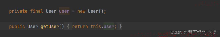 首先是调用的 getUser 去获取的,而这个user 就一直接 new 的一个User对象,它是一个静态内部类实例。