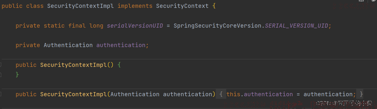 源码分析到这,差不多就很清晰了,再看看SecurityContextImpl的源码吧,其实不用看也知道,就是 Authentication 对象的封装,这看一下属性和构造就差不多可以猜到大概了。