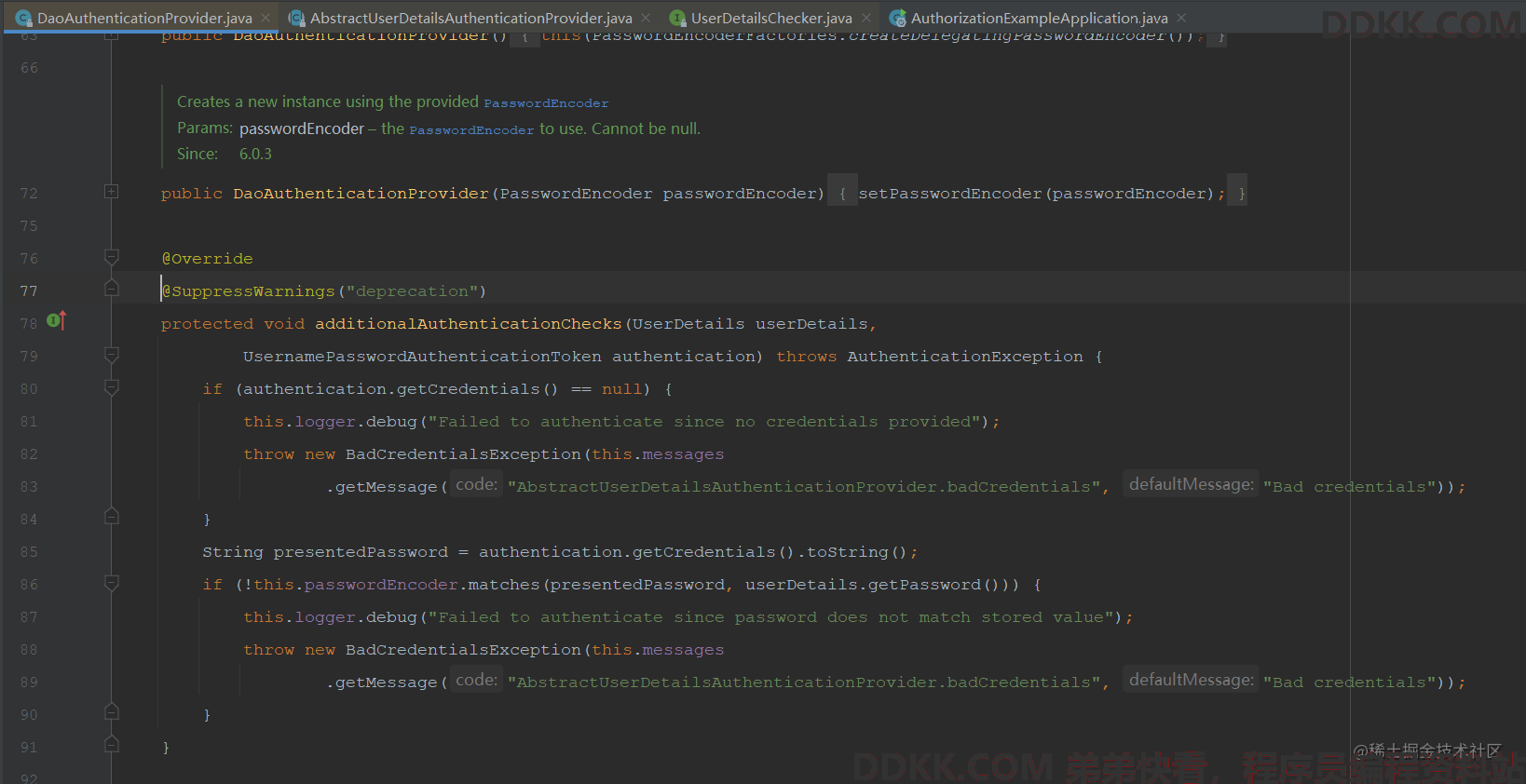 那就说明DaoAuthenticationProvider也实现了该方法,来看下子类实现。