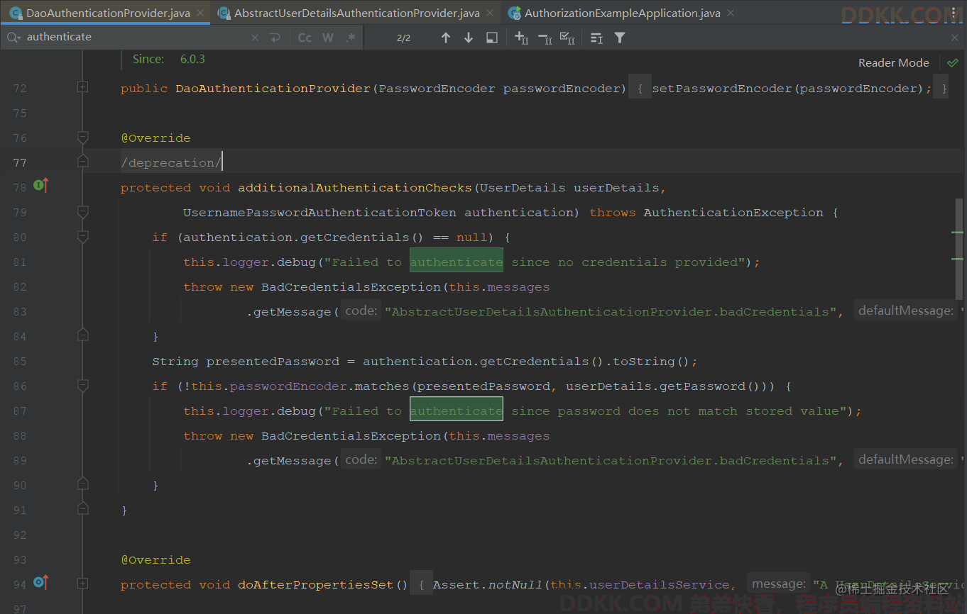 在DaoAuthenticationProvider中搜索authenticate方法没有搜索到