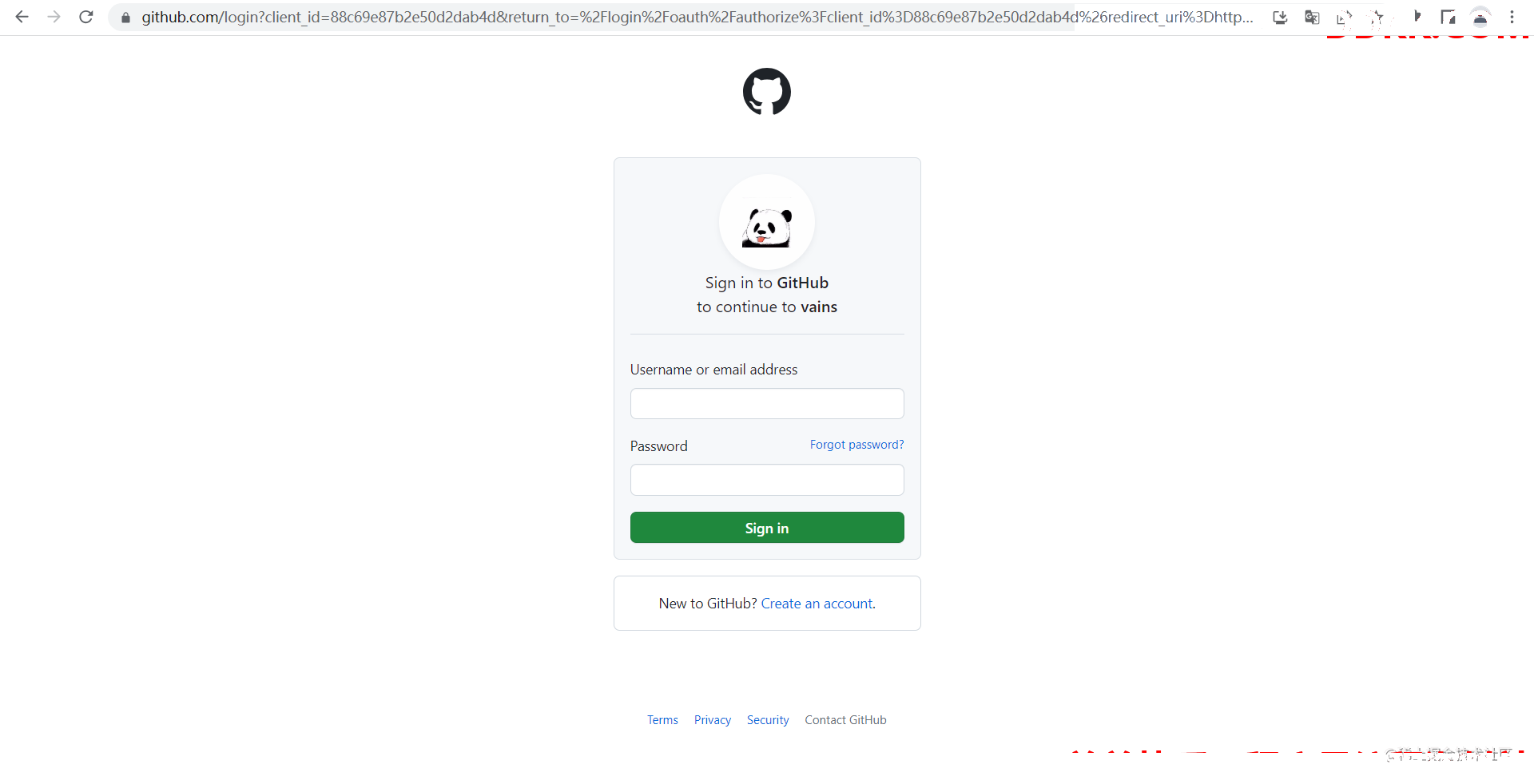 (这一步很有可能会显示无法访问,原因懂得都懂) 4、 提交登录以后重定向至Github的授权确认页面;