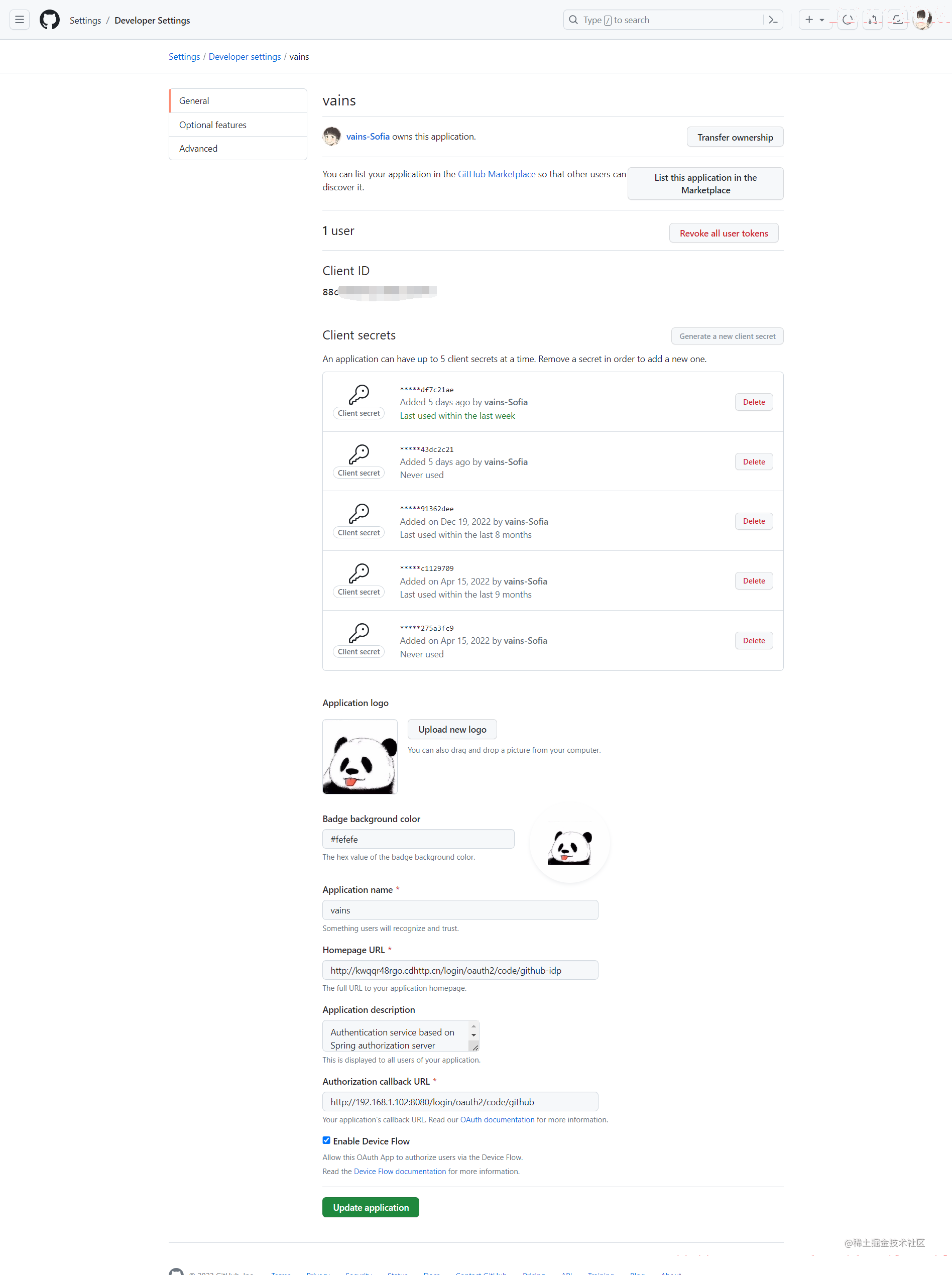 客户端秘钥,使用自己的gitee的客户端秘钥