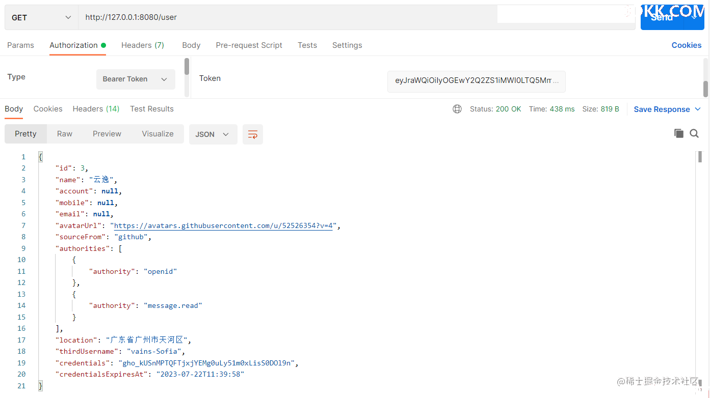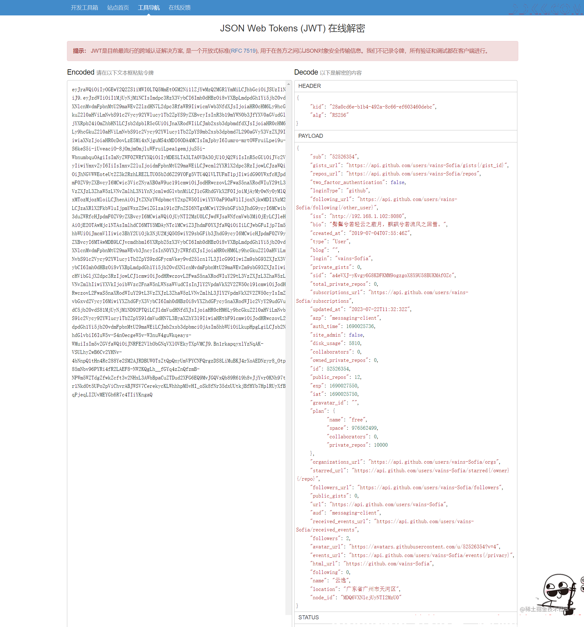解析后发现Github返回的用户信息很全,都可以在里边找到,这也是idToken的作用,不用访问服务器通过解析token的方式获取用户信息,减少客户端与服务端的交互次数。