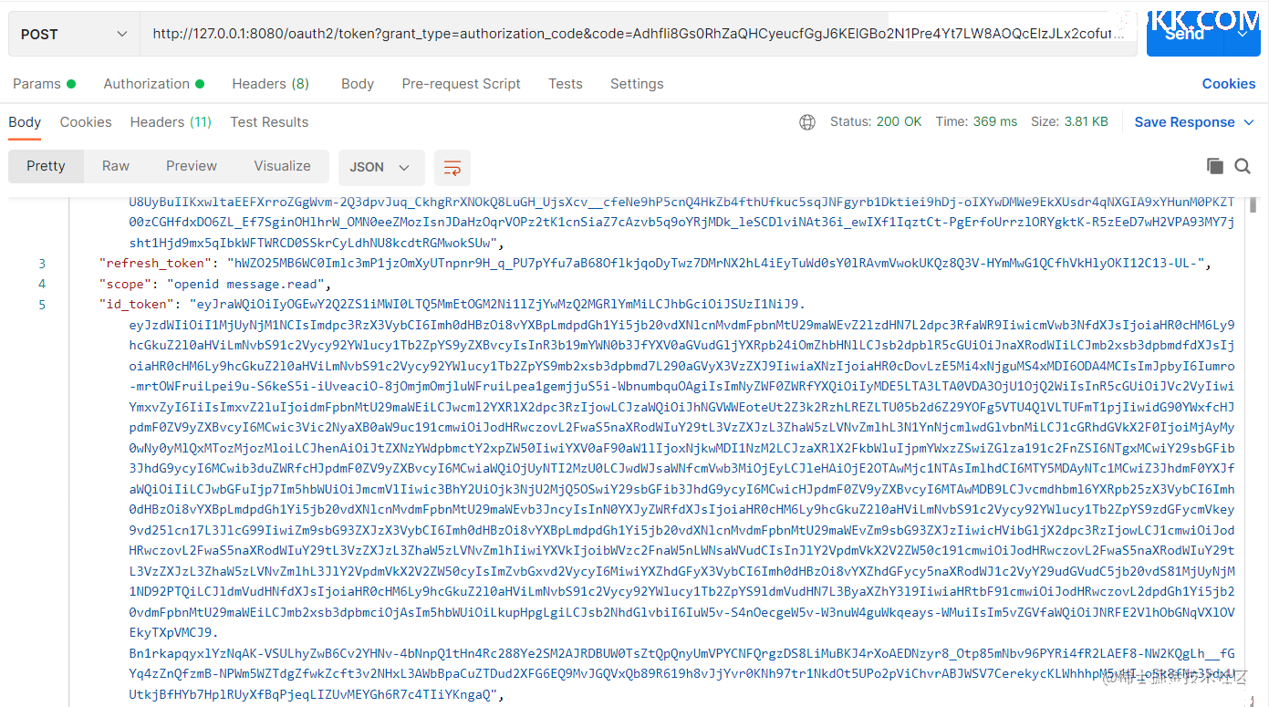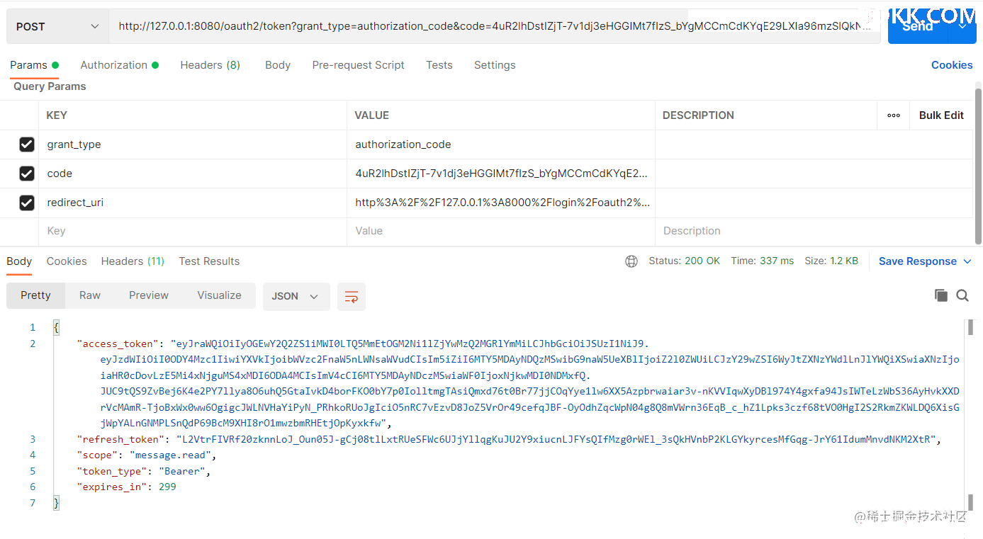 图略 7、 使用POSTMAN模拟客户端使用code换取accesstoken;
