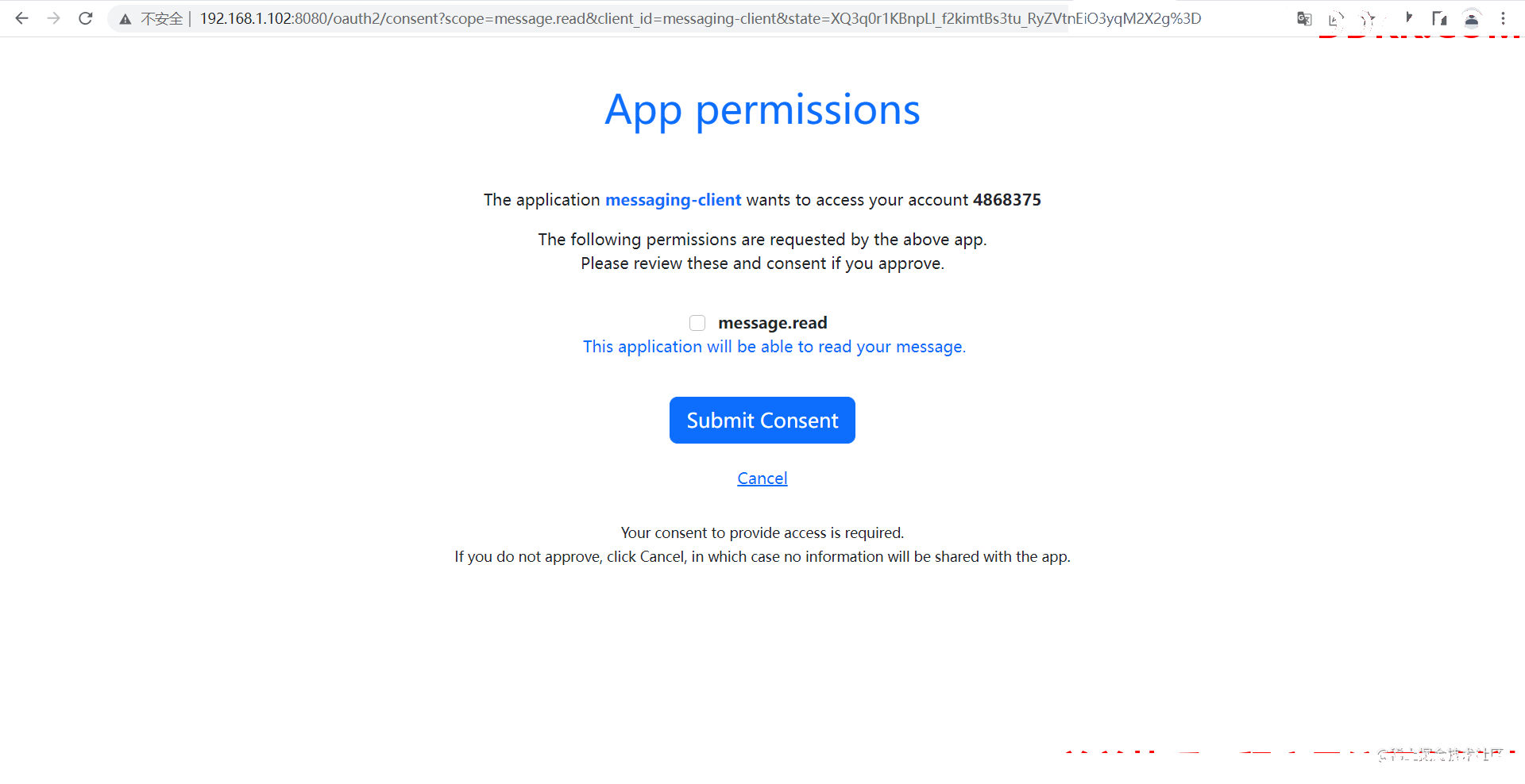 http://192.168.1.102:8080/oauth2/authorize?client_id=messaging-client&response_type=code&scope=message.read&redirect_uri=http%3A%2F%2F127.0.0.1%3A8000%2Flogin%2Foauth2%2Fcode%2Fmessaging-client-oidc