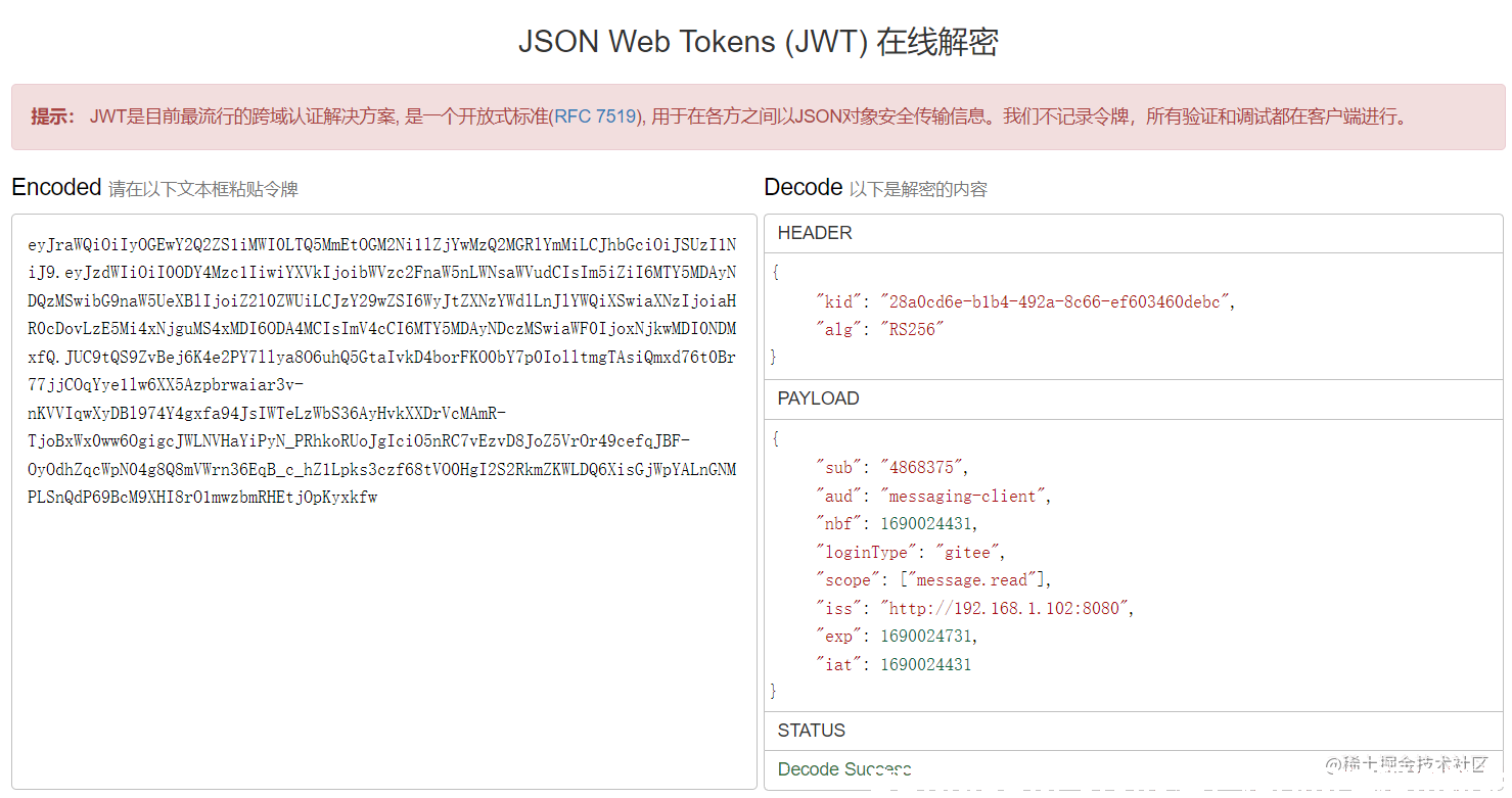 可以看到响应了idToken,并且idToken巨长,解析一下看看jwt中的内容