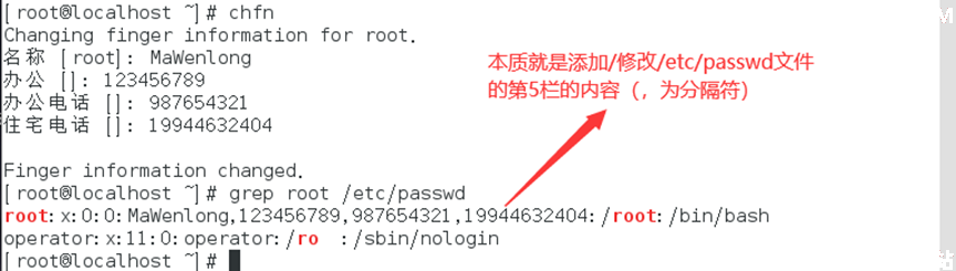 | Name | 用户的注释 /etc/passwd文件的第5栏 |