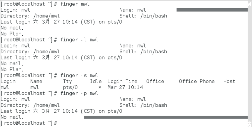 指令格式2:finger 选项 用户名 //列出指定用户的信息