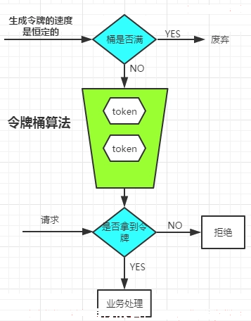 生成令牌速度固定,而请求去拿令牌是没有速度限制的。当面对瞬时大流量,令牌可能短时间被消耗而空,而在生成新的令牌前,后续流量会被拒绝。